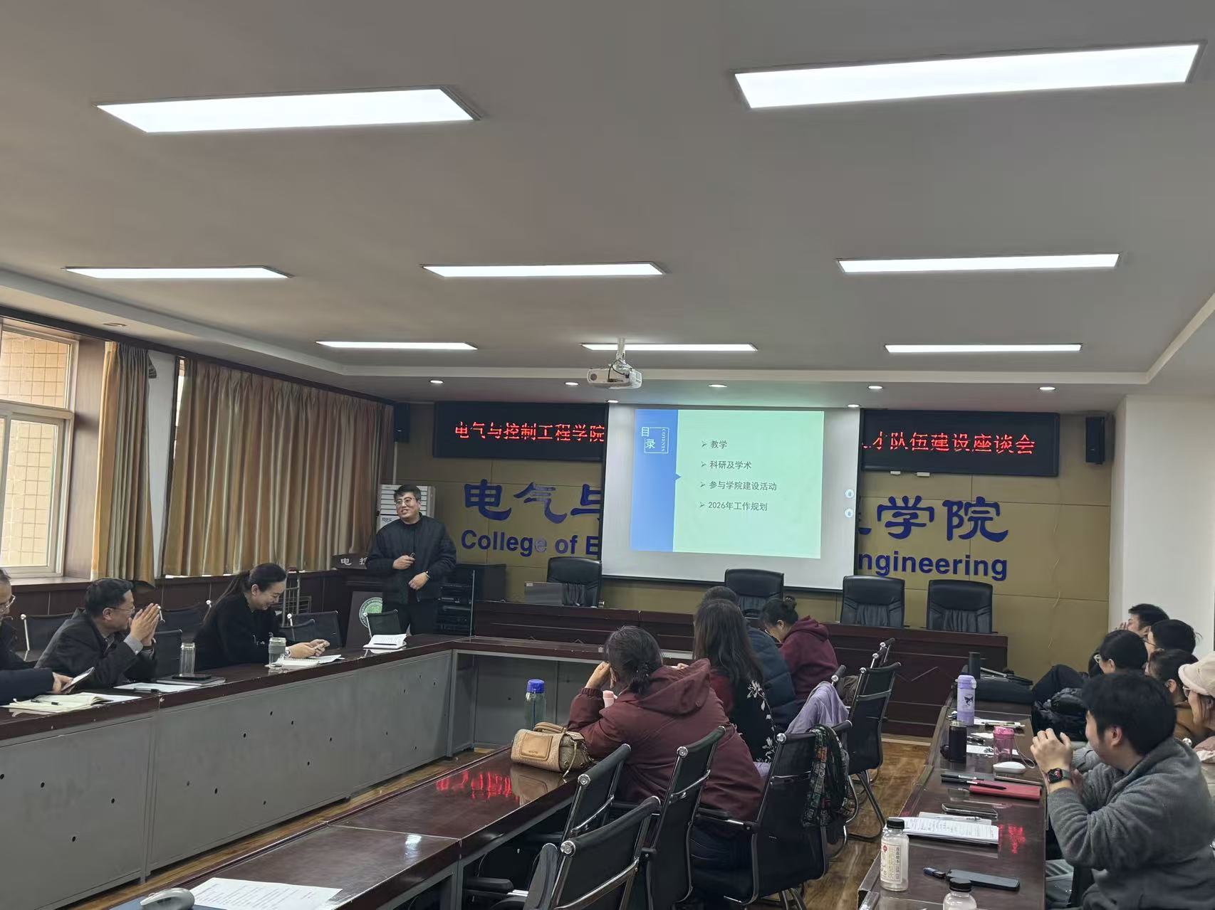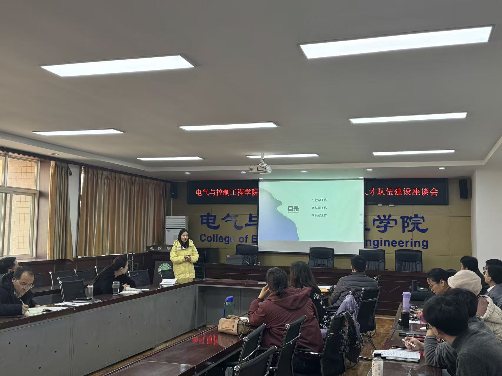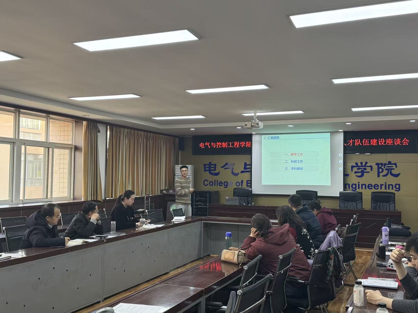 会议第一阶段,电气工程学科学术带头人刘树林、高淑萍、杜光辉、马莉和控制科学与工程学科学术带头人寇发荣、潘红光、秦学斌、刘宝分别从日常工作、学科成果、学科申报、人才引进、存在问题等方面进行了年度和聘期工作汇报。