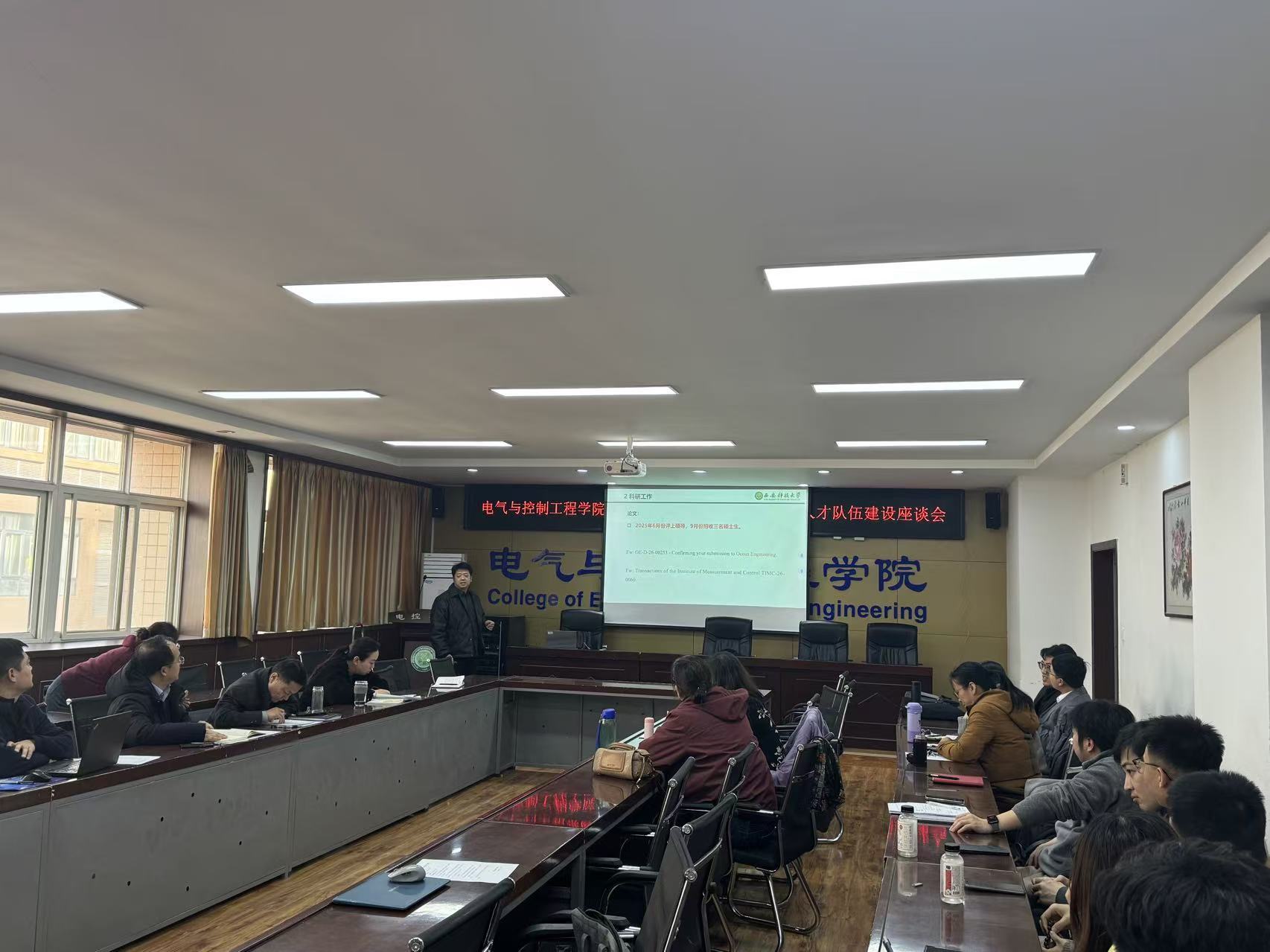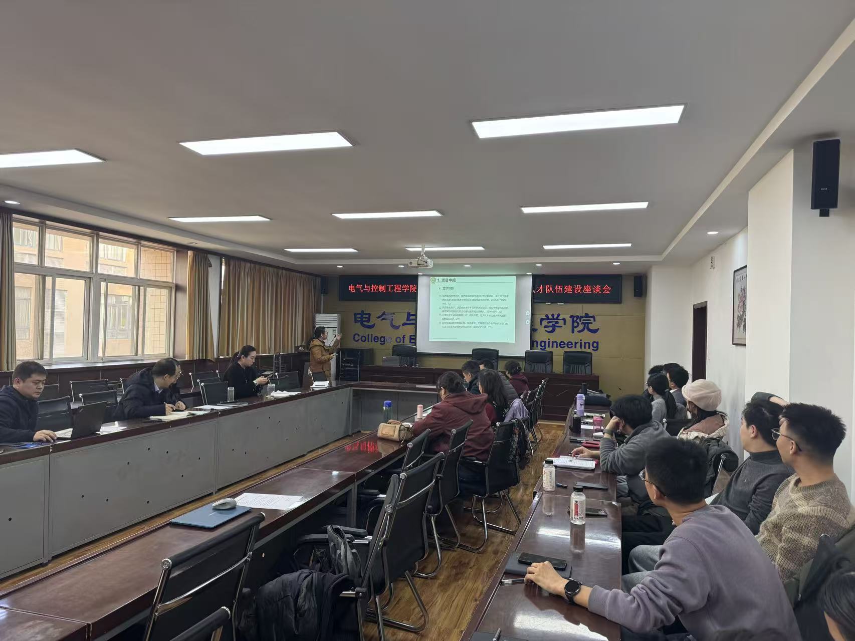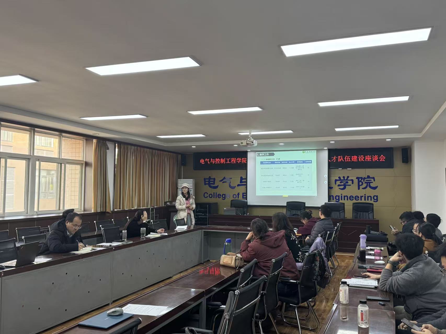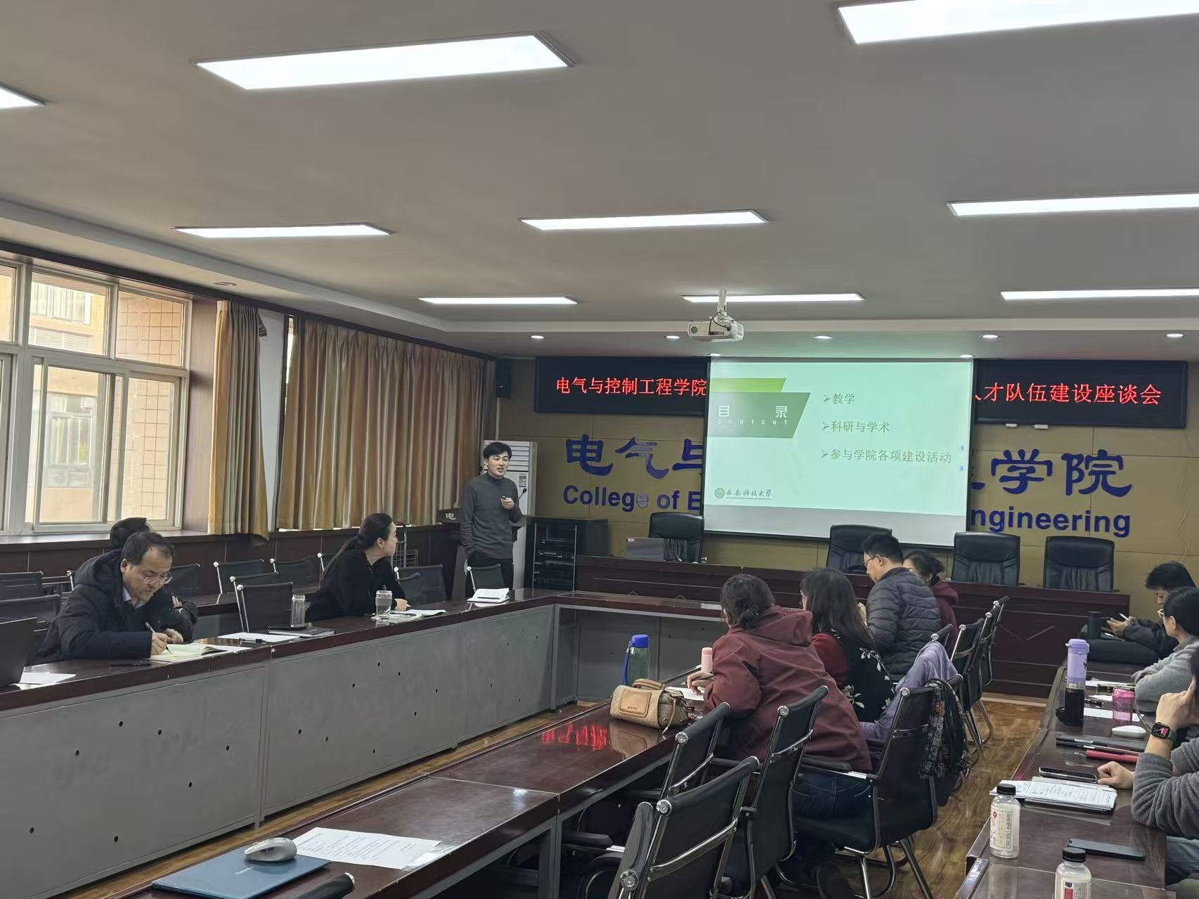 会议第一阶段,电气工程学科学术带头人刘树林、高淑萍、杜光辉、马莉和控制科学与工程学科学术带头人寇发荣、潘红光、秦学斌、刘宝分别从日常工作、学科成果、学科申报、人才引进、存在问题等方面进行了年度和聘期工作汇报。